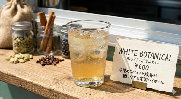 ・ホワイトボタニカルハイボール(¥600):4種のスパイスと燻香が織りなす自家製ハイボール✨さっぱりとした大人の味わいです。